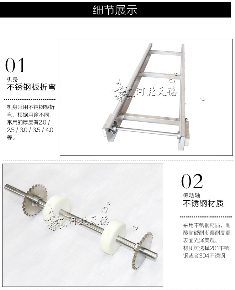 輸送機材質:有A3低碳鋼、201不銹鋼、304不銹鋼等。