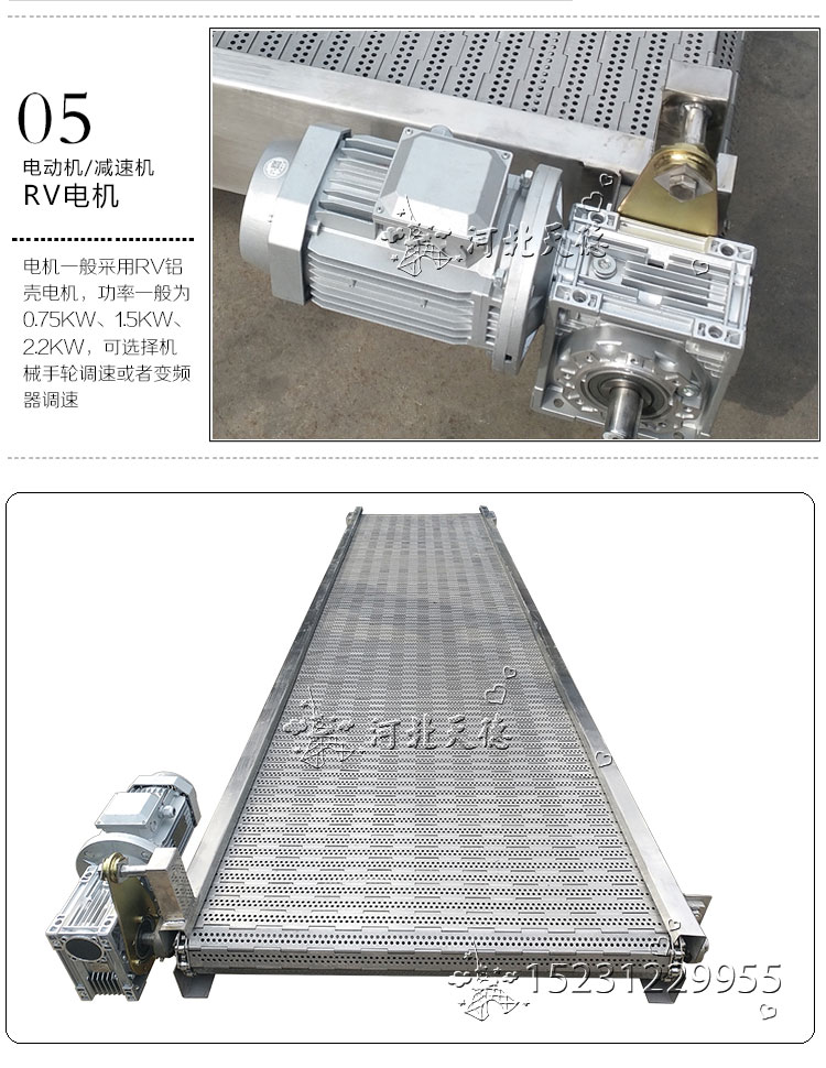 不同輸送環境所使用的鏈板輸送機型號不一樣,不同型號鏈板輸送機功能和成本也不一樣,所以鏈板輸送機型號的選擇是一個很重要的環節。首先根據輸送物料特性來確定鏈板輸送機材質,食品輸送、高溫輸送、腐蝕環境送要選用不銹鋼材質,自然環境輸送用碳鋼或鍍鋅鏈板都可。然后根據輸送物料形狀和單位面積重量來選擇鏈板型號、鏈條型號,常規來講大體積、大重量用折彎型鏈板輸送機,密度小的散碎物料用合頁型鏈板輸送機,輕型高速輸送那就選擇平頂鏈板輸送機。 在金屬件輸送和廢料輸送中經常用到鏈板輸送機,鏈板輸送機的型號和參數是很多的,用戶在選擇時要根據自己的產品來選擇。鏈板輸送機常規型號有平頂鏈板輸送機、折彎鏈板輸送機、合頁鏈板輸送機,其中以合頁鏈板輸送機用的廣泛。